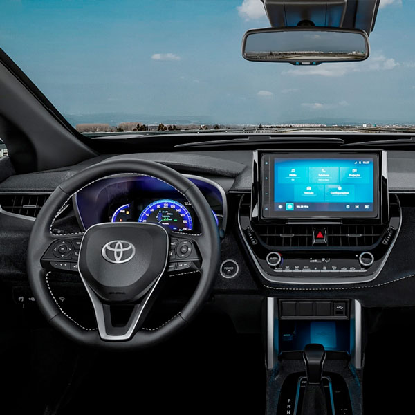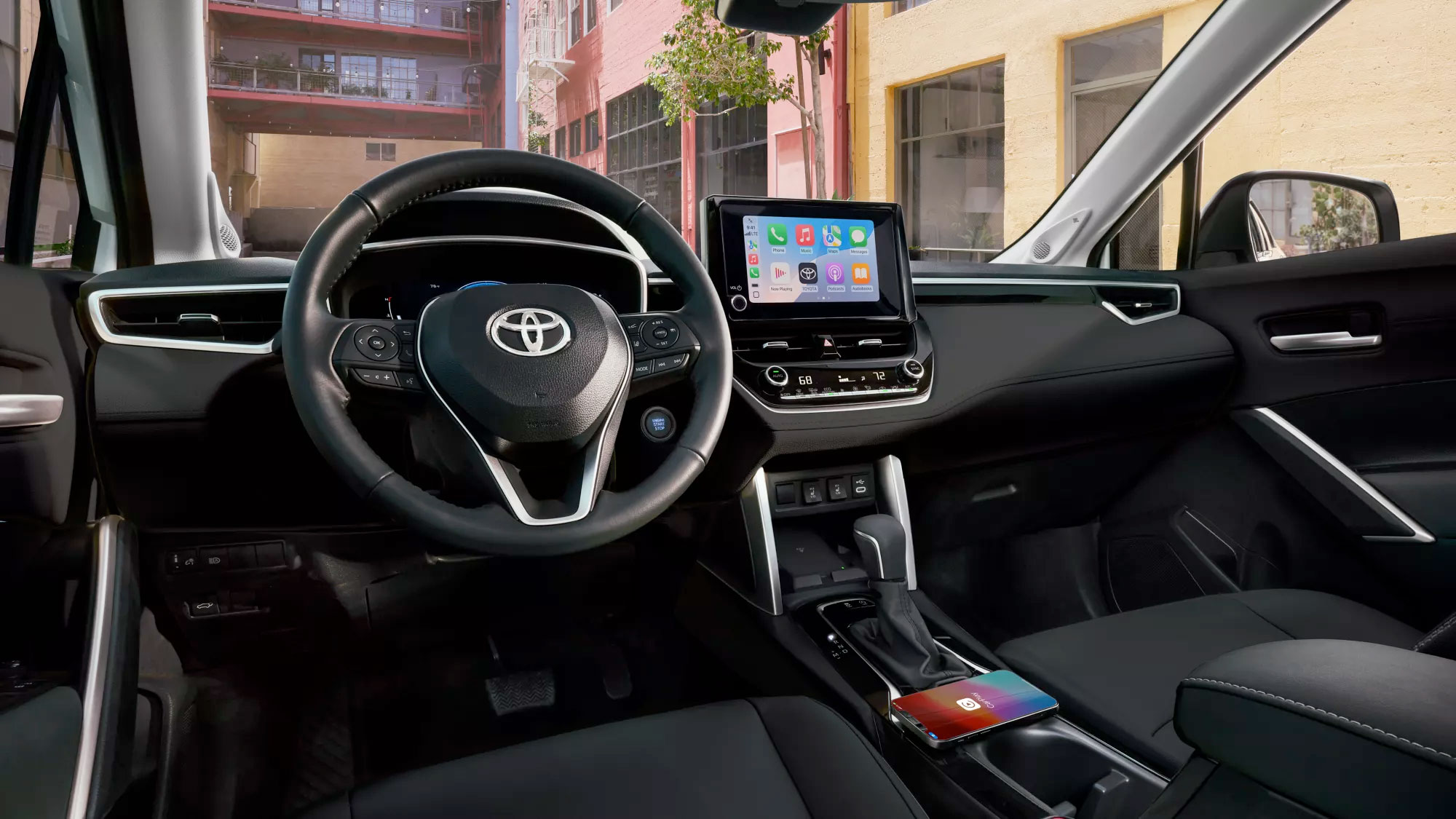 کرولا کراس ۲۰۲۴ با سیستم اطلاعات و سرگرمی لمسی ۸ اینچی، اتصال بیسیم Apple CarPlay و Android Auto و شارژر بیسیم، تجربهای مدرن و راحت برای راننده و سرنشینان فراهم میکند.